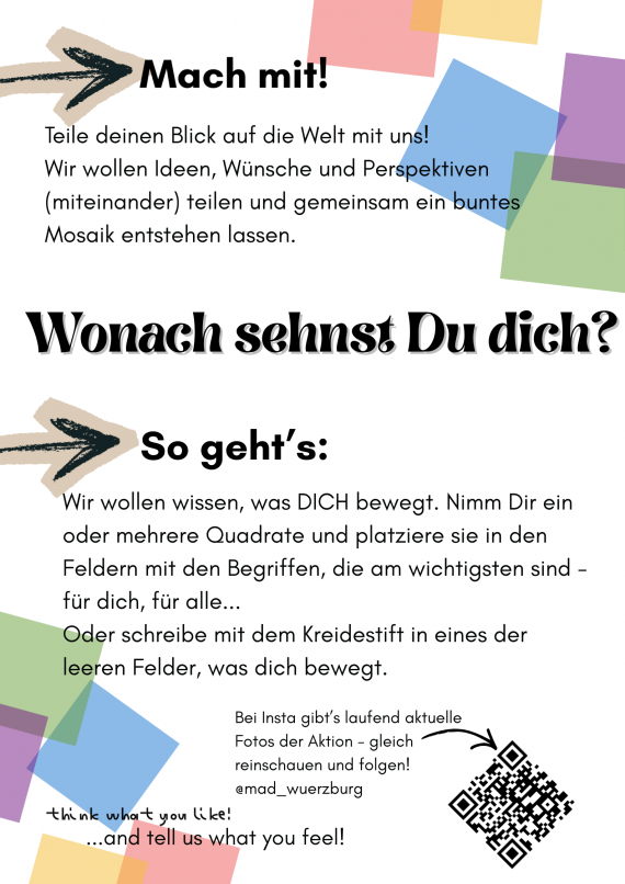 Wir wollen Ideen, Wünsche und Perspektiven (miteinander) teilen und gemeinsam ein buntes Mosaik entstehen lassen.